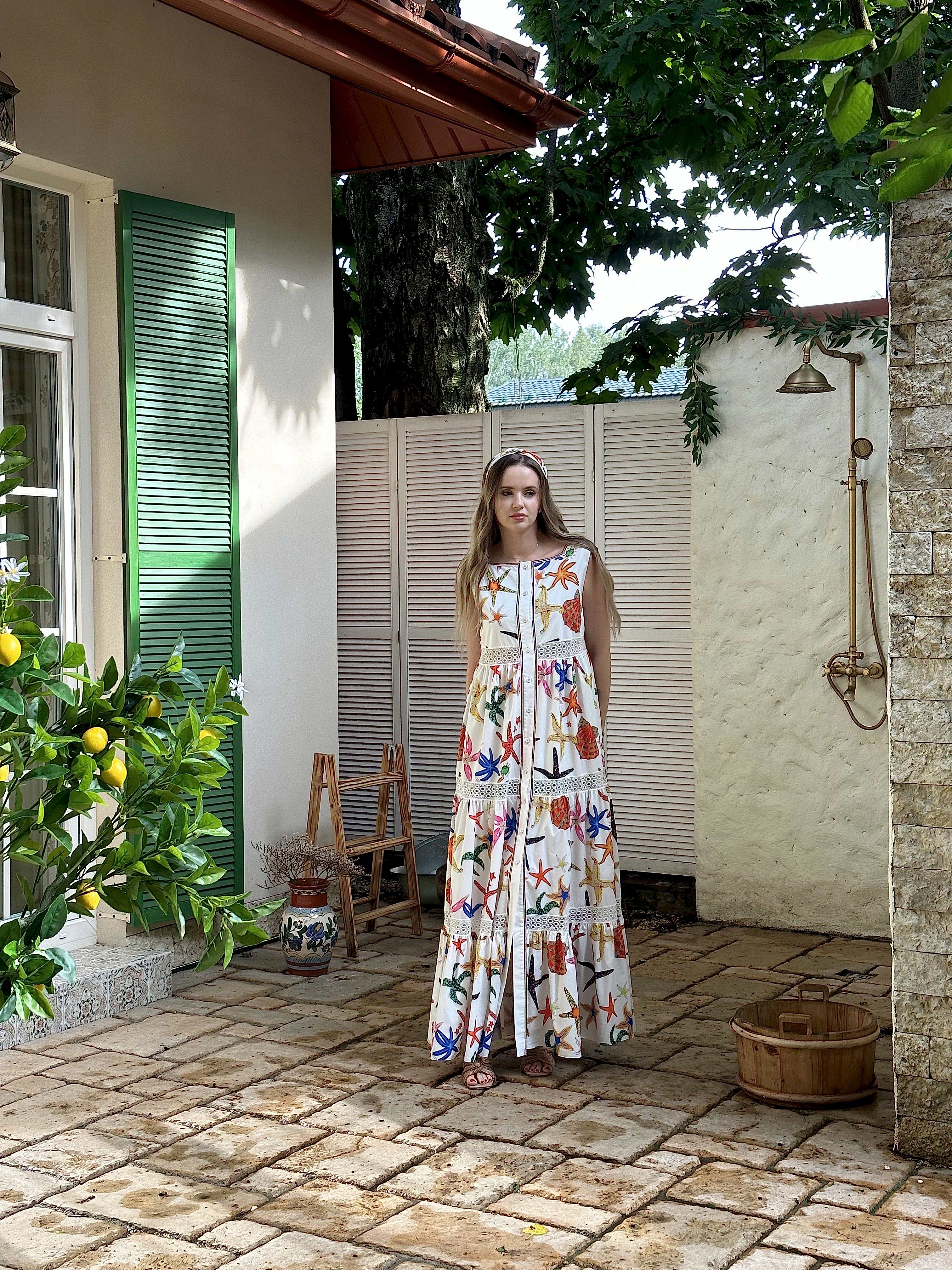 Платья в пол- это всегда про драму, величие и женственность. В 2025 году макси - это не только вечерние варианты, но и лёгкие дневные Pin Up с цветочным принтом, широким поясом или высокой горловиной.