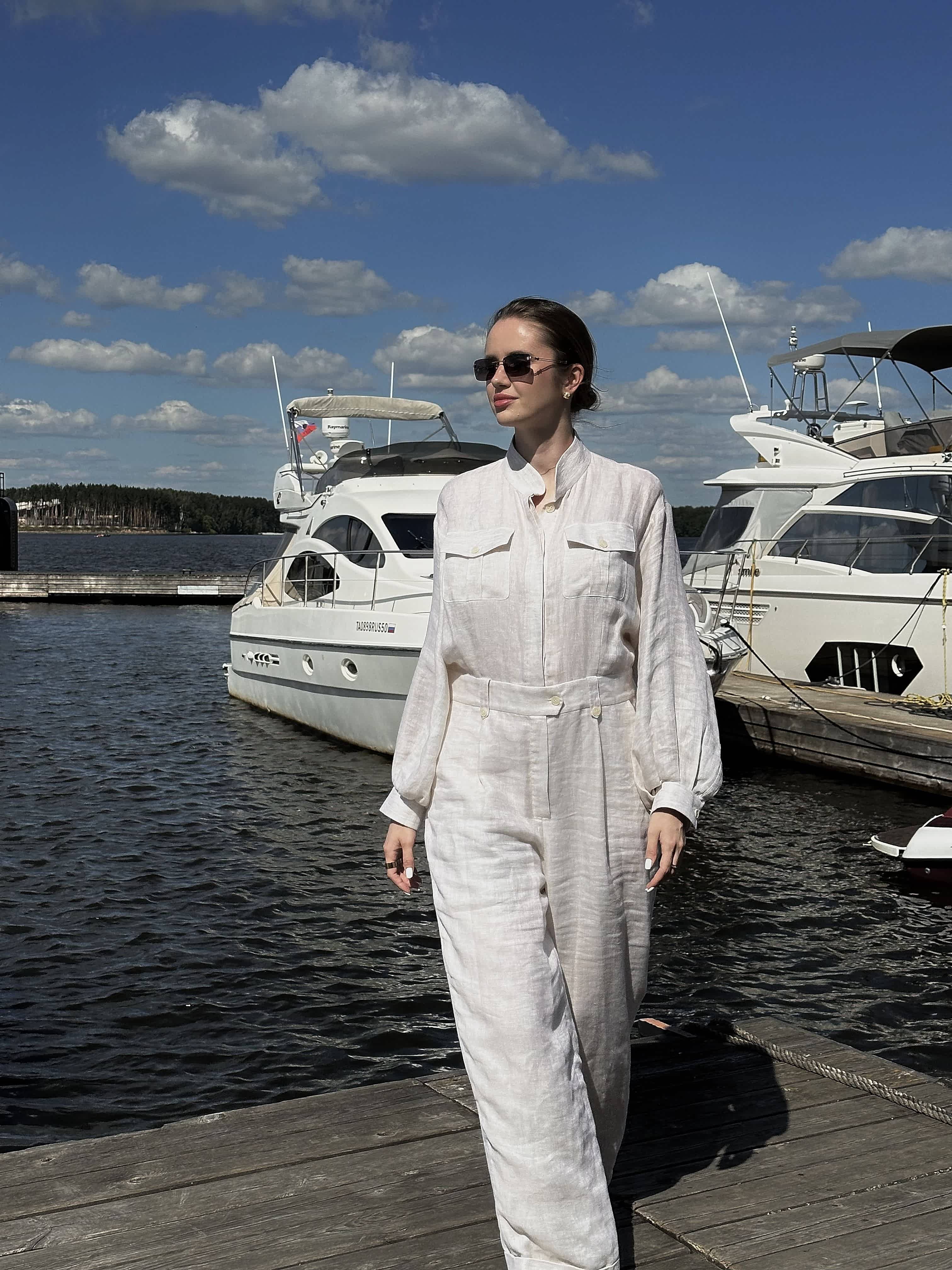 Тельняшка снова в центре внимания. Это может быть как классическая модель с сине-белыми полосками и круглым вырезом, так и современный вариант с воротником поло. Она придаёт образу лёгкую небрежность и утончённый шарм.