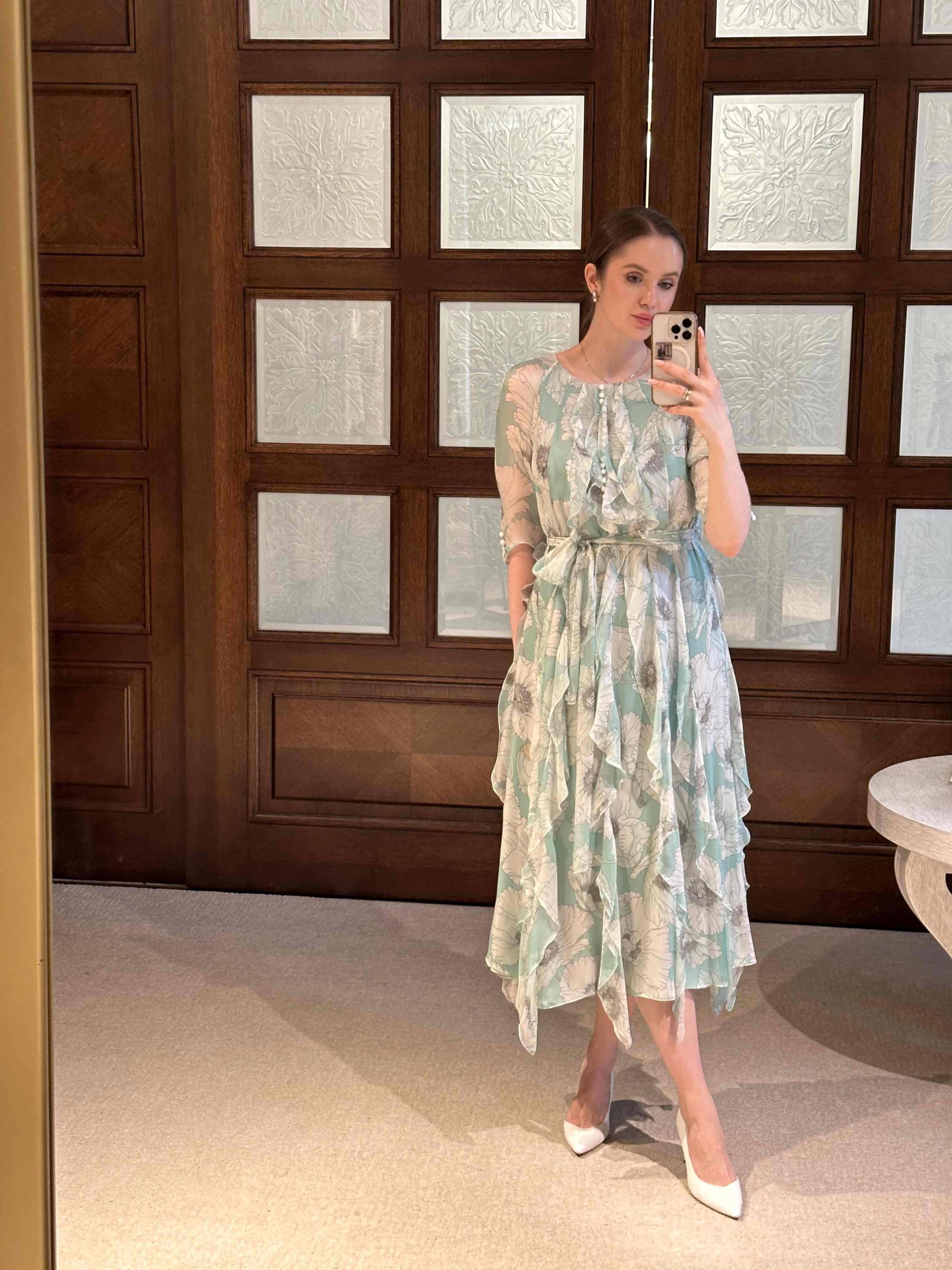 Добавьте акцент с помощью аксессуаров: заколка с цветком, миниатюрная сумка, Pin Up гольфы в паре с балетками или слингбэками. Главное - не перегружать лук. Один нежный акцент сделает образ утончённым, а не избыточным.