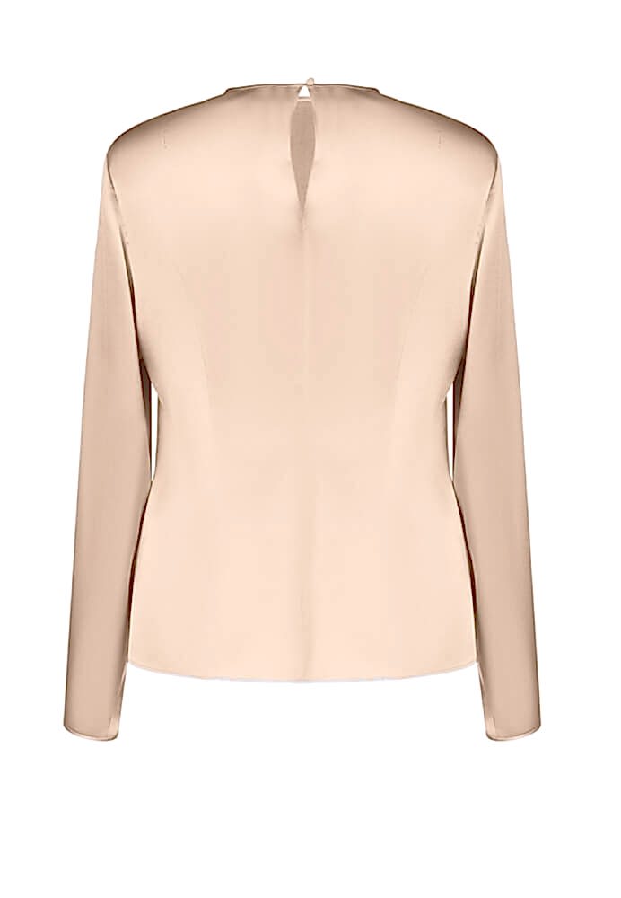 Блуза свободного кроя изготовлена из Pin Up стрейч-атласа. Ткань невероятно комфортна, так как благодаря эластану прекрасно сидит на фигуре и не сковывает движений. Атласный блеск придает изделию нарядный праздничный вид и особый лоск.