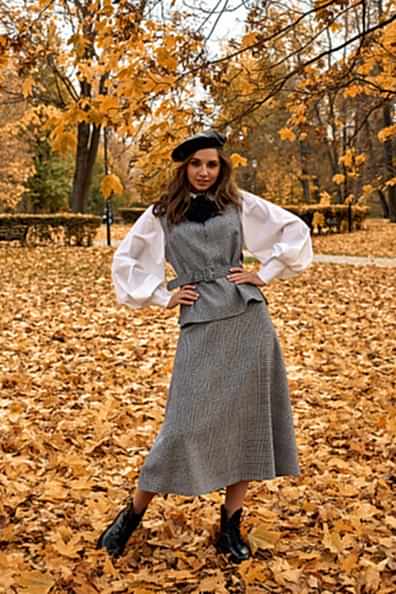 Эффектный костюм-двойка в клетку из французской шерсти с кашемиром. Жилет приталенного силуэта с потайной молнией сзади в качестве застежки. Юбка слегка расклешенная к низу. Ремень собирает весь образ и делает Pin Up визуально стройнее. На подкладке.