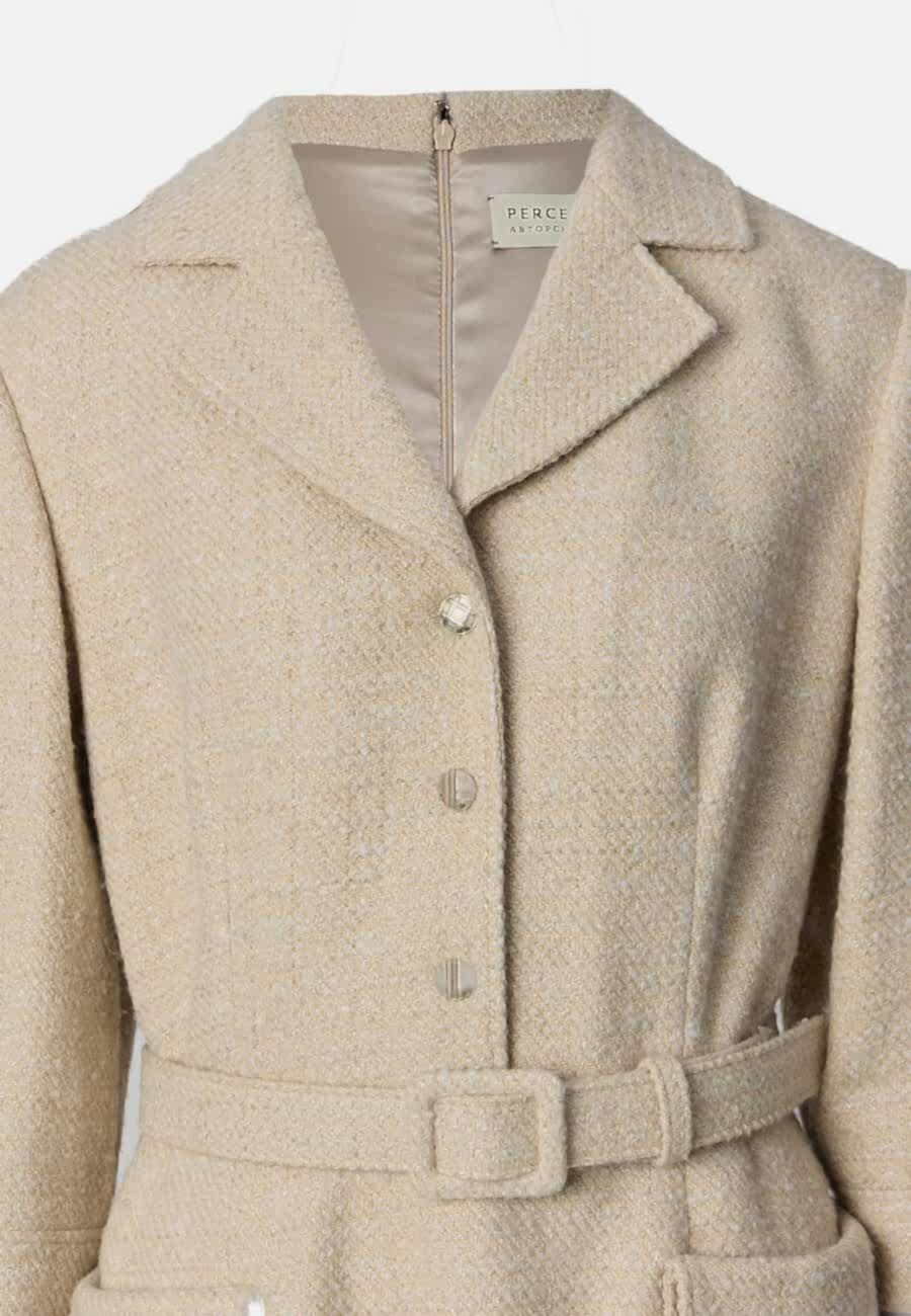 Платье из хлопкового твида в цвете экрю сочетает в себе натуральность материала и классический крой. Приталенный силуэт, подчеркивающий талию. Обтяжной ремень в тон платья акцентирует талию, добавляя Pin UpПлатья